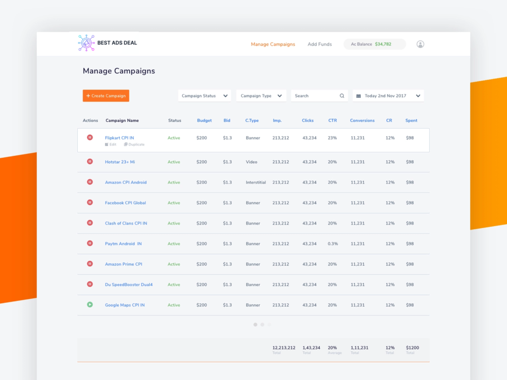 To create a new campaign go to campaigns page then on top of the page click Create then select preferred ad type and provide necessary details asked in different sections once details filled recheck once then finish and run campaign .